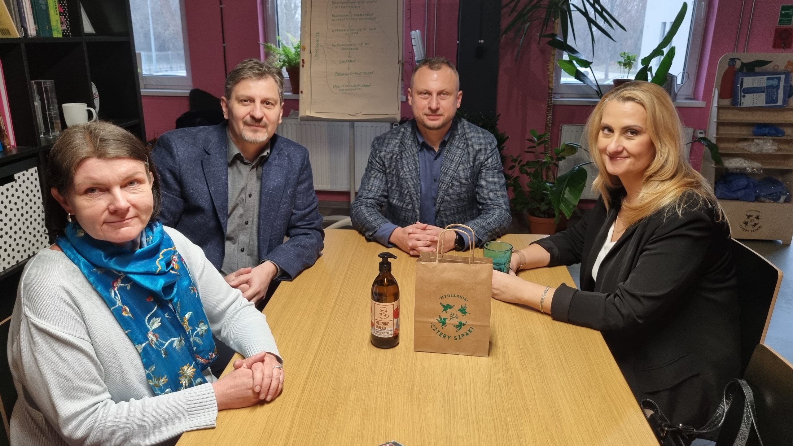 Od lewej: Dorota Isajuk Enterprise Europe Network przy PFRR, Marek Dźwigaj Prezes Zarządu PFRR, Grzegorz Sienkiewicz Dyrektor Zarządzający 4Szpaki, Anna Wrzesińska PFRR – Enterprise Europe Network przy PFRR, Główny specjalista ds. współpracy międzynarodowej.