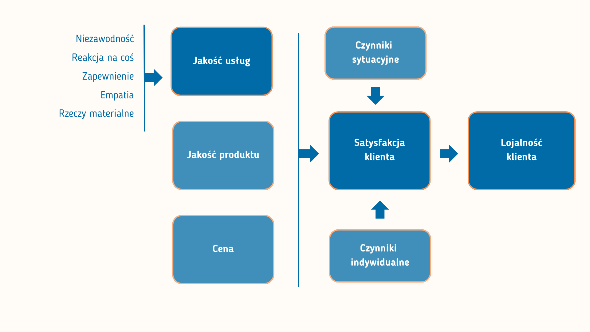 Na satysfakcję klienta mają wpływ określony produkt lub usługa, sposób ich odbioru przez klienta, cena, a także czynniki zewnętrzne, takie jak nastrój klienta czy opinie jego otoczenia. W kontekście biznesowym na ocenę nowego produktu lub usługi wpływają nie tylko osobiste doświadczenia klienta, lecz także sposób, w jaki firma reaguje na jego opinie. Dodatkowo emocje klienta odgrywają istotną rolę, ponieważ mogą znacząco wpływać na sposób, w jaki postrzega on jakość i wartość produktów oraz usług.