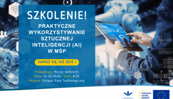 Zachęcamy do udziału w bezpłatnym warsztacie „Praktyczne wykorzystanie sztucznej inteligencji (AI) w MŚP”, który odbędzie się 24 marca 2026 r. w Elbląskim Parku Technologicznym w Elblągu.